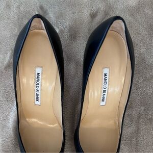 Authentic Manolo Blahnik Black Leather Pointed Toe BB Pump 39.5 105mm