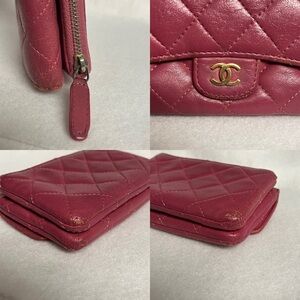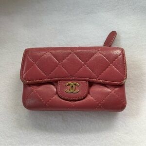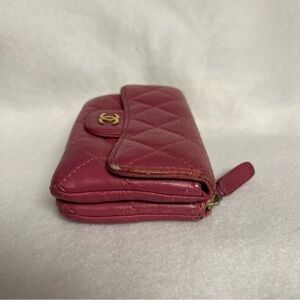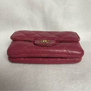 CHANEL Pink Flap Lambskin Leather Snap Card Holder Double Pocket Zip GHW