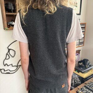 Vintage 90s 2000s Dark Gray Wool V Neck Knit Cardigan Sweater Vest ~ Size Small