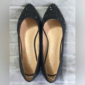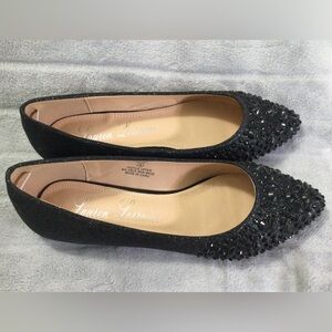 Lauren Lorraine Black Embellished Pointed Toe Ballet Flats Size 8