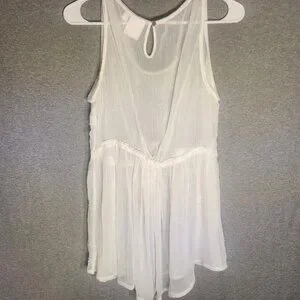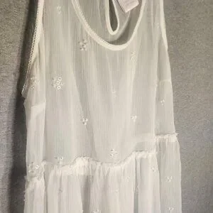 Lauren Conrad Sheer Babydoll Tank Top Floral Embroidery Keyhole