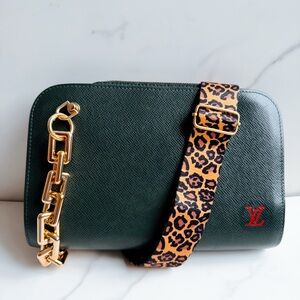Louis Vuitton Baikal Taiga Green leather clutch crossbody