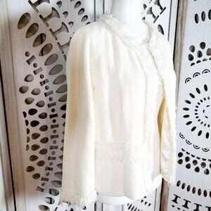 This gorgeous classic Chanel inspired jacket by Lida Baday would be a staple in your closet for years to come. You can wear this beautiful jacket with a dress, skirt, or jeans.