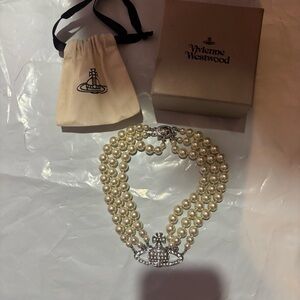 Vivienne Westwood Cream Pearl and Silver Necklace