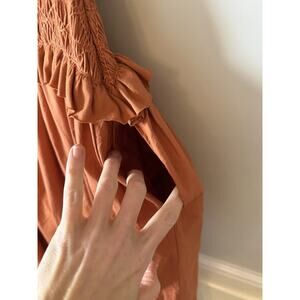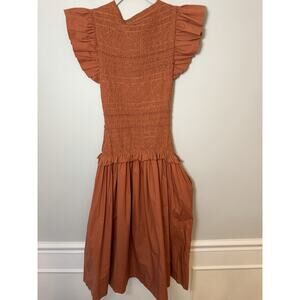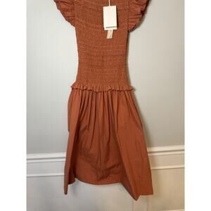 ULLA JOHNSON Madeline Smocked Cotton Midi Dress Brown Pockets Size 0 NWT $595