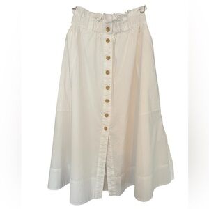 Everlane Easy Paperbag Midi Skirt White Cotton Button Front XXS