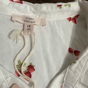 Como Vintage Womens Plus Size 1X Strawberries Button-Up Shirt L/S Roll Tab NWT