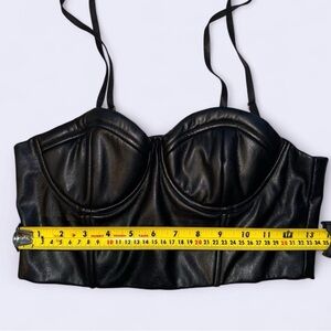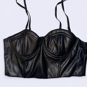 Sleek black crop top. Features a structured design. Adjustable straps for perfect fit.