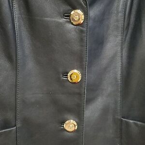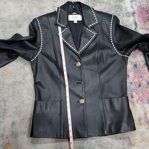 St. John Lambskin Leather Jacket in Black with White Stitching Size S