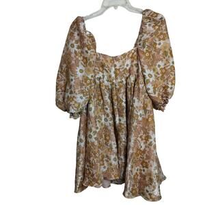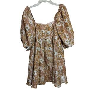 4681) Storia Retro Floral Puff Sleeve Baby Doll Cottagecore Mini Dress Medium
