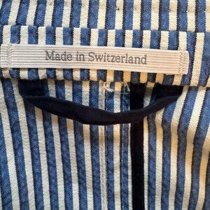 Stylish blue and white striped blazer. Ideal for formal events. Crafted by Ermenegildo Zegna.