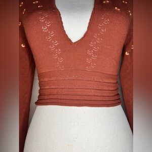 Intimately Free people Eyelet Floral Embroidery Knit cropped long sleeve small
