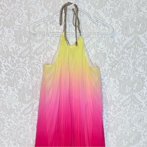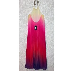 Step out in style with this stunning pink and purple ombre maxi dress. Featuring a chic halter neckline, this dress is perfect for any occasion. The flowing design adds a touch of elegance to your wardrobe.