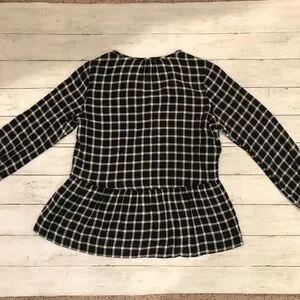 Rails Black and white Long Sleeve Plaid Checkered Ruffle Small Babydoll Blouse