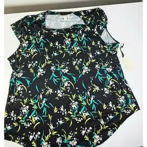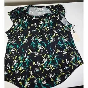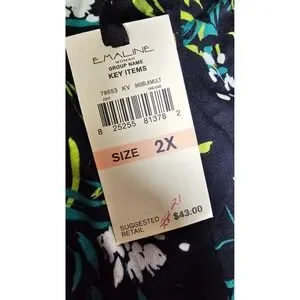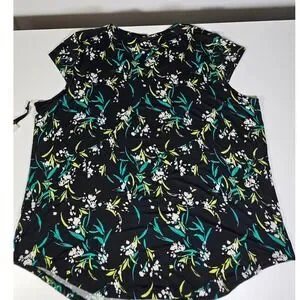 EMALINE WOMAN Floral Print Black Green White Short Sleeve Top Plus Size 2X