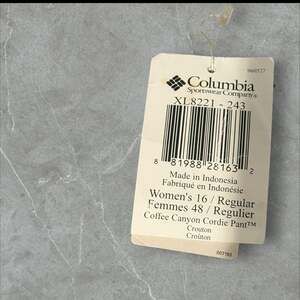 New with tags Columbia Women's Coffee Canyon Cordie Pant in color Crouton. These high-quality corduroy pants feature a comfortable regular fit and a classic straight-leg silhouette, perfect for outdoor activities or casual everyday wear.