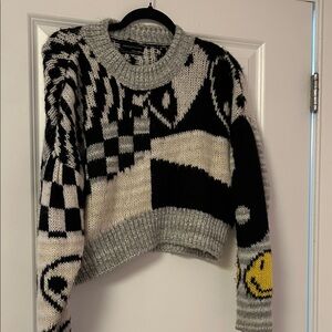 Urban Outfitters Black and Gray Graphic Sweater