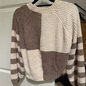 Altar'd State Cream and Brown Patchwork Sweater