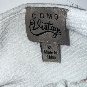Como Vintage Ivory Embroidered Peasant Blouse Tie Neck Boho XL
