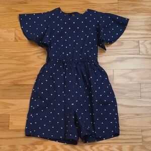 Tucker + Tate Navy & White Hearts Flutter Sleeve Romper, Size 7 Gently Used
