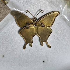 Vibrant butterfly brooch with red, blue, and gold accents. Perfect for adding a pop of color to any outfit.