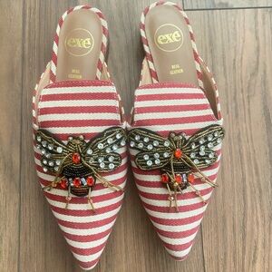 Exe Leather Bee Slip On Shoes Jeweled Embellished Art to Wear Striped Sz 8.5