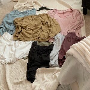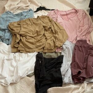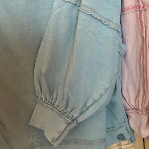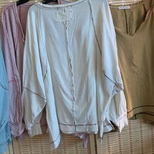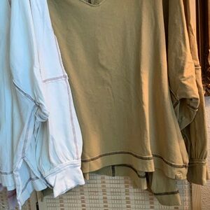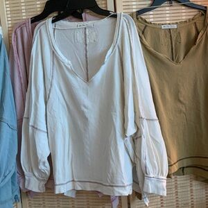 Soft cotton oversized tops. 5 available Blue S, Pink S, Tan S and ivory or cream a XS and a brand new in bag S.