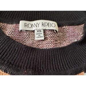 Ronny Kobo Pullover Sweater Sz XS Long Sleeve Fringe Black Brown White Viscose