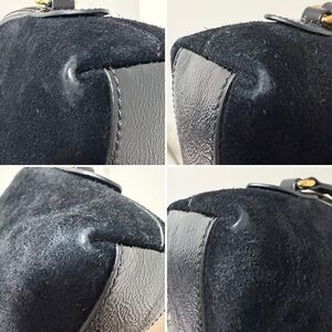 Very good pre-owned condition. Light rubbing is present at the corners, consistent with gentle use and visible in photos. Suede remains rich and even throughout with no bald spots. Patent leather trim and strap are clean and well-maintained. Hardware is bright and functions properly. Interior is clean and vibrant with no stains or odors.