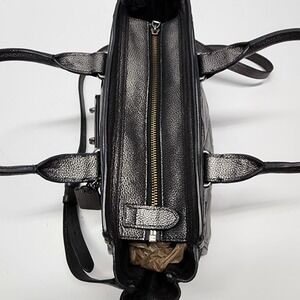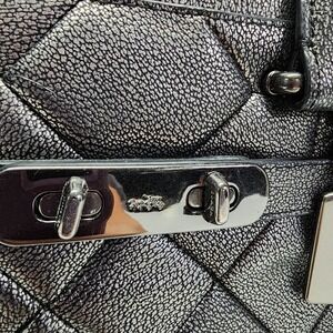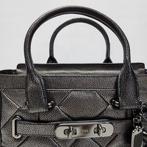 Coach Swagger 27 Patchwork Gunmetal Metallic Leather Carryall Purse 34547 $550
