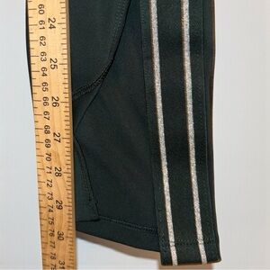 Chic forest green leggings with side stripe. Ideal for active wear.
