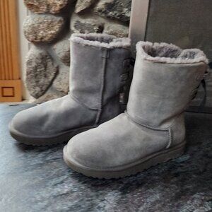 UGG Short Continuity Bow Gray Boots Size 10. Like new!