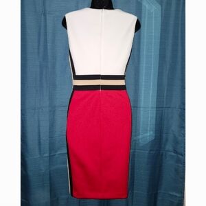women's midi dress / red, white, and tan colorblock sheath dress / midi up knee length / women's - size 12 / professional or dress up wear / sleeveless with invisible zipper in back / NWOT pre-owned condition
