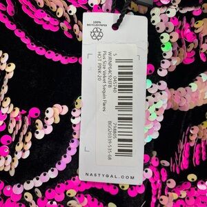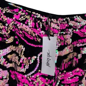 Nasty Gal Black Velvet Hot Pink Sequin Flare Pants Size 16. New with tags. Laying flat measurements: 15” rise, 34” inseam, 18” across waist.