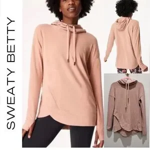 Sweaty Betty Escape Luxe Fleece Funnel Neck Hoodie Misty Rose Pink Medium