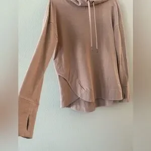 Soft blush hoodie with drawstring hood. Features long sleeves and a relaxed fit.