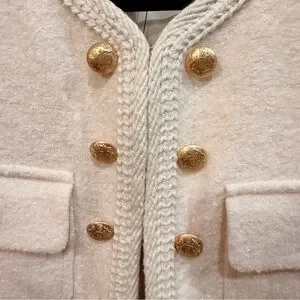 Talbot's Elegant cream blazer with gold button details. Ideal for a polished look at work or for an event. You can dress this up or down. Wear with jeans and a tank with wide leg jeans and boots or heels.