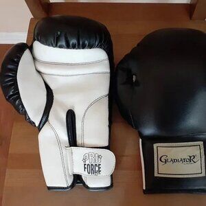 Black and White boxer Pro Force Kickboxing Gladiator boxing gloves 12 oz