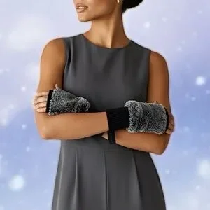Jocelyn Women’s Black & White Fur Knit Fingerless Gloves Sz OS