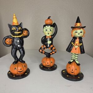 Johanna Parker Halloween Black Cat Frankenstein And Witch Figurines Set HTF Rare