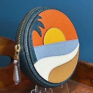 This colorful Coach Beach Postcard Circle Coin Purse, style C4220, is in Excellent, Unused Condition.