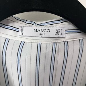 Stylish white shirt with blue stripes. Ideal for casual outings. Comfortable and chic. In excellent condition. No stains, or holes, or signs of significant wear.