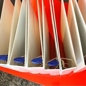 Collection of sleek 2.5’’ white binders. Perfect for organizing documents. Pre-Owned and in Excellent Condition at $2.5 each.