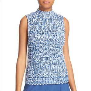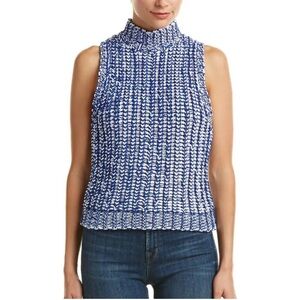 Alice + Olivia Tomi Chunky Knit Sleeveless Sweater Blue & White Size XS NWT