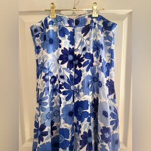Like New! Chic strapless maxi with vibrant blue floral linen pattern. Flowy and elegant design. Ideal for special occasions.
