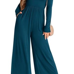 Teal Long Sleeve Wide Leg Jumpsuit NWT