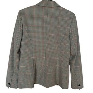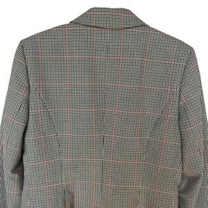 This Vintage Calvin Klein Blazer Jacket in women's size 4 is a classic and stylish piece perfect for various occasions such as travel, casual wear, workwear, and business meetings. Made from a blend of polyester, rayon, and spandex, this one-button blazer features a plaid pattern in shades of brown, tan, and orange. The jacket is lined with 100% polyester, making it lightweight and comfortable to wear. With its timeless design and designer brand, this Calvin Klein blazer is a modern and yet traditional addition to any woman's wardrobe. This Calvin Klein blazer jacket is in excellent pre owned clean condition and has the extra buttons attached inside, no stains, holes, or odor issues. Please review the pictures for details and size measurement information to ensure a proper fit, thank you.