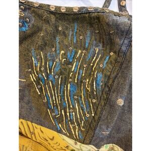 Vintage Y2K European Denim Embellished Crop Top With Layered Floral Ruffles and sequins