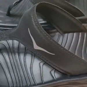 Plush, post-workout relief. You just gave it all in that race and now your feet need some care, pronto. They put a HOKA oversized midsole and Meta-Rocker geometry into a flip flop and improved the toe straps with a more anatomically friendly fit. It hugs the foot and provides sleek comfort and support. Your tired feet just got rescued. Used only for a photo shoot, see all pics for reference.