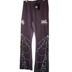 Keywords: SHE sweatpants, spider web pants, flare sweatpants, graphic sweatpants, limited edition pants, women's sweatpants, purple sweatpants, streetwear pants, designer sweatpants, gothic sweatpants, wolf graphic pants, 968 of 1000, new with tags sweatpants